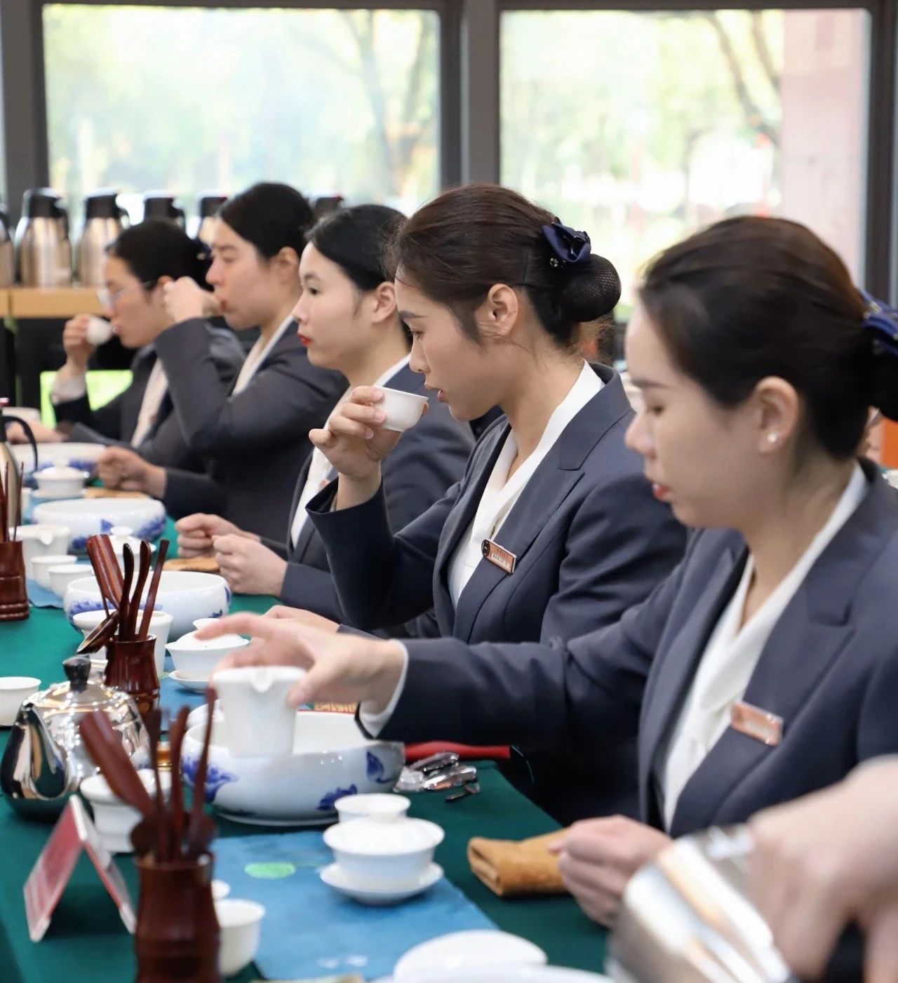 培训还设置了互动体验环节,员工们分组进行冲泡展示,讲师从动作规范性、茶汤口感、礼仪表现等方面进行点评。通过实践,员工们不仅掌握了冲泡技巧,还深刻体会到服务细节的重要性。一位员工表示:“茶艺不仅是技艺,更是一种服务艺术。今后,我们会继续以细致入微的态度提高接待服务水平。”