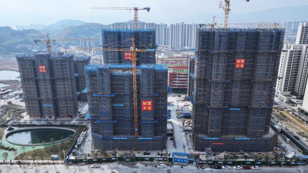 2月9日,我市重点民生安置工程——金荷映月小区项目所有楼栋顺利实现主体结构全面封顶,标志着项目圆满完成关键节点建设目标,正式进入砌体、安装与装饰装修多工序并行的新阶段,为早日交付使用奠定坚实基础。