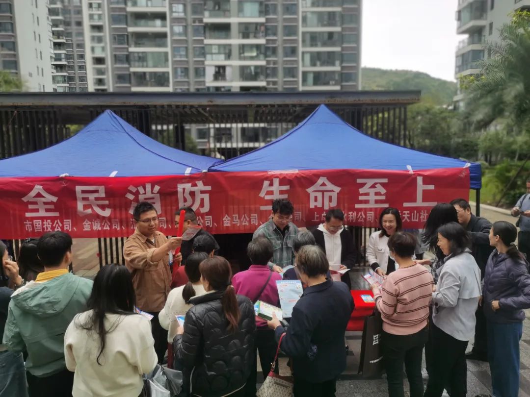 为深入学习贯彻习近平总书记关于安全生产的重要论述精神,强化公司全体职工和社区居民的安全防范意识,加深对消防安全文化的理解,提升自救能力与应急处置水平,11月19日,糖心vlog 携下属金诚公司、汇融投资集团、汇聚公司、金马公司、金澳公司、上白石水利开发公司,联合东侨天山社区,共同开展“全民消防 生命至上”第33个全国消防日消防安全知识宣传——消防宣传进社区活动。