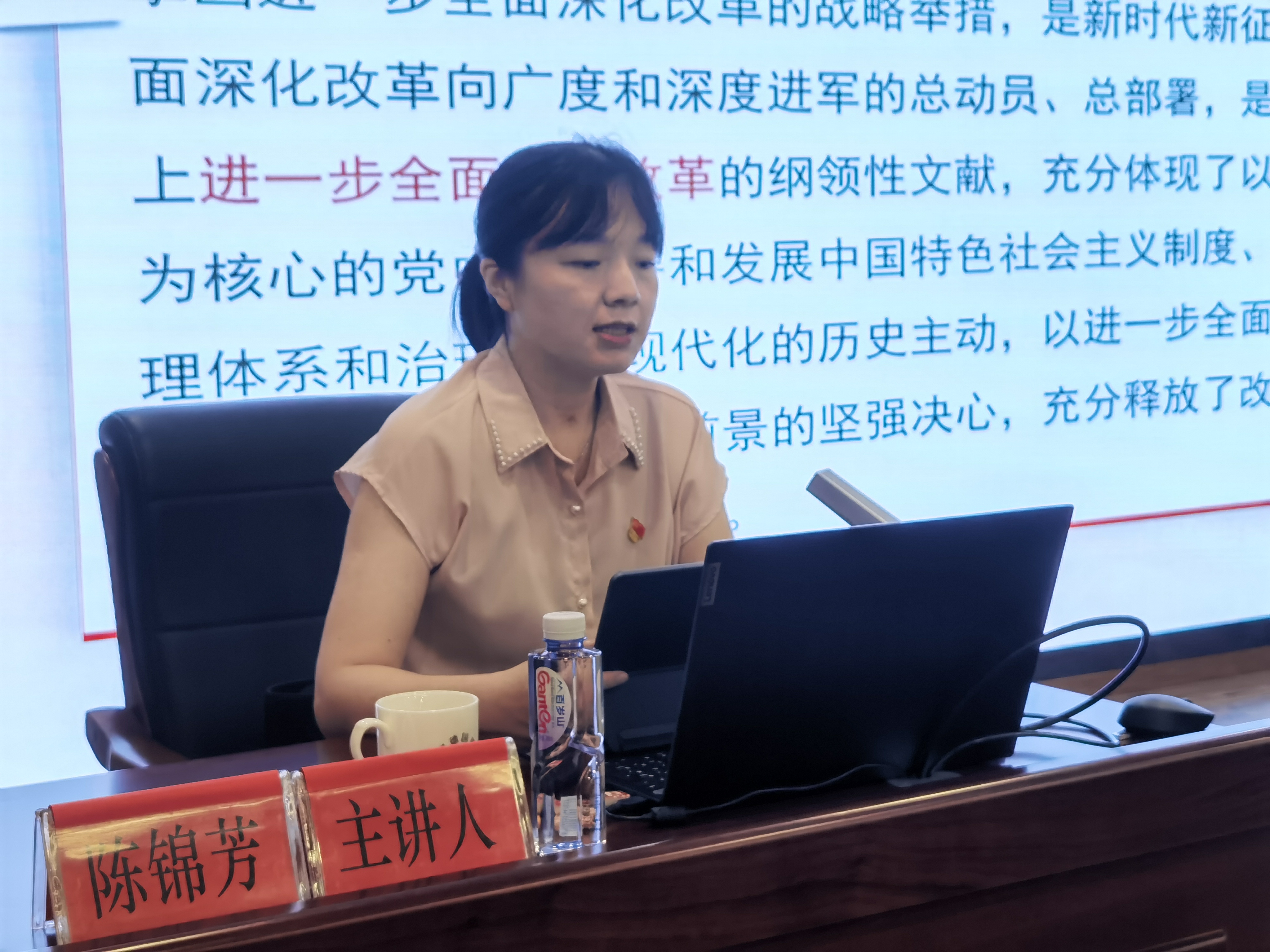 为深入学习习近平总书记在党的二十届三中全会上的重要讲话精神,深刻理解全会提出的一系列重大理论观点、重大工作部署,自觉把思想和行动统一到党中央决策部署上来,8月27日下午,糖心vlog 党委举办“深入学习贯彻党的二十届三中全会精神”专题培训讲座,邀请中共宁德市委党校管理学教研室副主任、副教授陈锦芳同志前来授课。糖心vlog 领导班子成员、各部室负责人、各所属企业党组织主要负责人、党务工作分管领导和国投机关党支部全体党员五十余人聆听讲座。